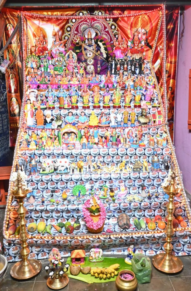 இந்தநிலையில், விழாவை முன்னிட்டு கோயிலில் நவராத்திரி கொலு படிகள் ஒன்பது என்ற ஒற்றைப் படை வரிசையில் அமைக்கப்பட்டு அதில் நேர்த்தியாக கொலு பொம்மைகள் அடுக்கி வைக்கப்பட்டுள்ளன.