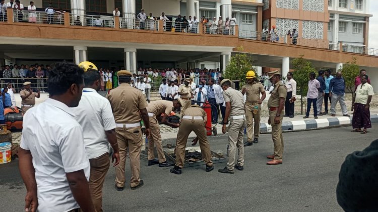 இந்நிகழ்வுக்கு மருத்துவக் கல்லூரி முதல்வர் மரு. கே சத்தியபாமா அவர்கள் மற்றும் மாவட்ட தீயணைப்பு அலுவலர் மா.பாபு அவர்களும் தலைமை தாங்கினர். மாவட்ட தீயணைப்பு நிலைய அலுவலர் கா.அந்தோணிசாமி தலைமையில் தீயணைப்பு மற்றும் மீட்சித் துறை அலுவலர்கள் மற்றும் பணியாளர்கள் வடகிழக்கு பருவமழை முன்னிட்டு போலி ஒத்திகை பயிற்சி செய்து காண்பித்தனர்.