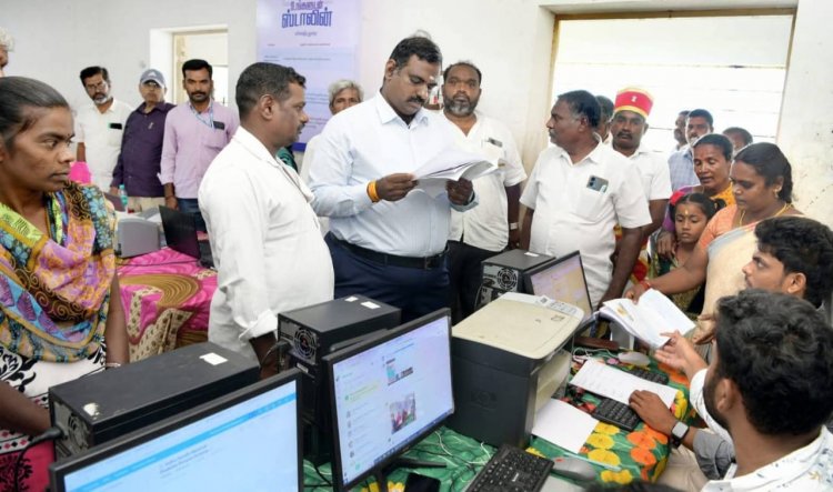 கிருஷ்ணகிரி ஊராட்சி ஒன்றியம், கிட்டம்பட்டி அரசு மேல்நிலைப் பள்ளியில், அகசிப்பள்ளி ஊராட்சிக்கு நடைபெற்ற "உங்களுடன் ஸ்டாலின்” திட்ட முகாமில் துறை வாரியாக அரங்குகள் அமைத்து பொதுமக்களிடம் மனுக்கள் பெற்று கணினியில் பதிவேற்றம் செய்யும் பணிகளை மாவட்ட ஆட்சித்தலைவர் ச.தினேஷ் குமார் இ.ஆ.ப., அவர்கள் இன்று நேரில் பார்வையிட்டு, ஆய்வு மேற்கொண்டார்.