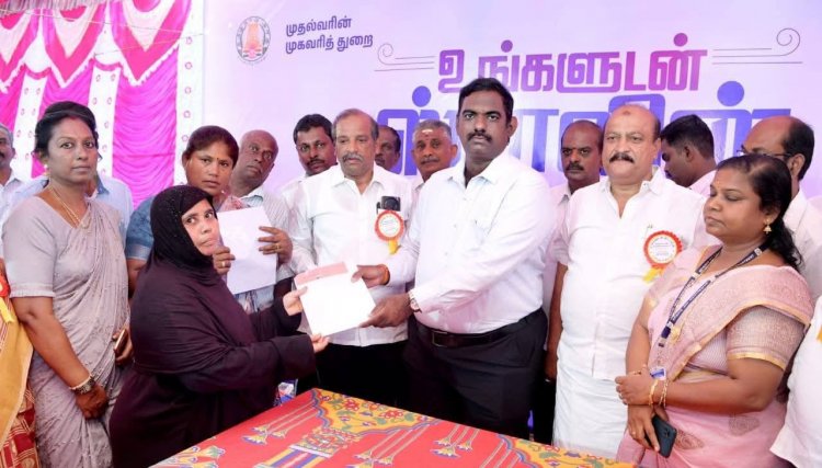 கிருஷ்ணகிரி மாவட்டம், காவேரிப்பட்டிணம் பேரூராட்சி, அரசு ஆண்கள் மேல்நிலைப் பள்ளி வளாகத்தில், நடைபெற்ற "உங்களுடன் ஸ்டாலின்" திட்ட முகாமில், துறை வாரியாக அரங்குகள் அமைத்து, பொதுமக்களிடம் மனுக்கள் பெற்று, கணினியில் பதிவேற்றம் செய்யும் பணிகளை மாவட்ட ஆட்சித்தலைவர் ச.தினேஷ் குமார் இ.ஆ.ப., நேரில் பார்வையிட்டு ஆய்வு மேற்கொண்டு, பயனாளிகளுக்கு மின் இணைப்பு பெயர் மாற்றம், குடும்ப அட்டையில் பெயர் சேர்த்தல் மற்றும் முதலமைச்சரின் விரிவான மருத்துவ காப்பீட்டு அட்டைகளை வழங்கினார்.