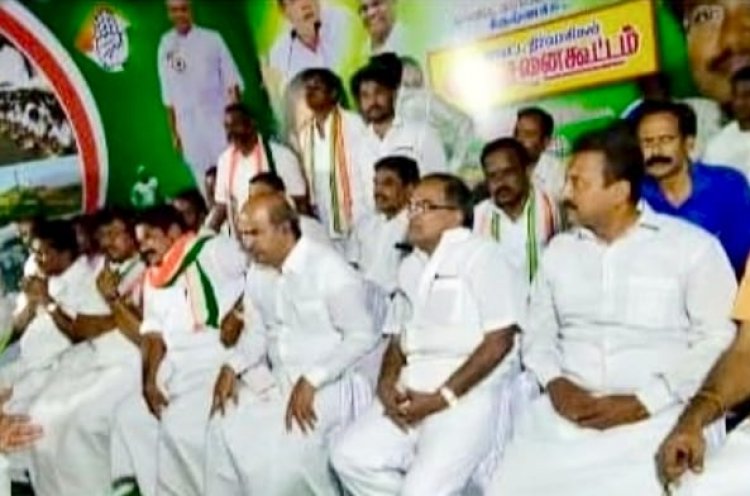 காவேரிப்பட்டிணத்தில் உள்ள காந்திஜி நூற்றாண்டு நினைவு மண்டபத்தினை மீட்கப் போராடும் காங்கிரஸ் கட்சியினர்."