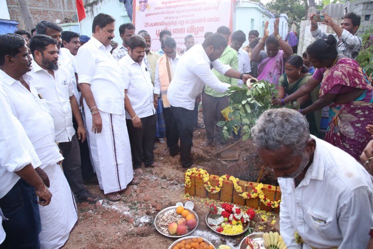 முதலமைச்சரின் வீடுகள் மறு கட்டுமானத் திட்டத்தின் கீழ் 1 வீட்டிற்கு ரூ.2.40 இலட்சம் மதிப்பீட்டில் 25 பயனாளிகளுக்கு மறு கட்டுமானம் செய்ய பூமி பூஜை.!