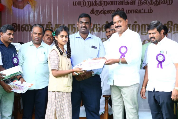 கிருஷ்ணகிரி கிழக்கு மாவட்டம், பர்கூர் சட்டமன்ற தொகுதிக்குட்பட்ட, ஐ.இ.எல்.சி., பார்வையற்றோர் பள்ளியில், மாற்றுத்திறனாளிகள் நலத்துறை சார்பில் உலக நாடுகள் மாற்றுத் திறனாளிகள் தினத்தை ஒட்டி நலத்திட்ட உதவிகள் வழங்கும் விழா நடைபெற்றது.