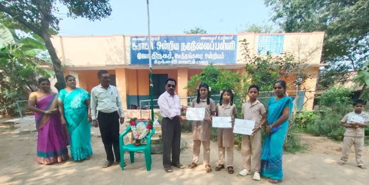 பின்னர் ஒன்றிய அளவில் நடைபெற்ற கலைத் திருவிழா மற்றும் வானவில் மன்றப் போட்டிகளில் கலந்துக் கொண்டு சிறப்பிடம் பெற்ற மாணவர்களுக்கு சான்றிதழ்கள் வழங்கப்பட்டது.