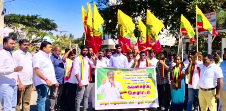 கிருஷ்ணகிரி மாவட்டம், ஓசூர் அரசு ஆண்கள் மேல்நிலைப்பள்ளி எதிரில் உயர்மட்ட மேம்பாலம் அமைக்கக்கோரி தமிழக வாழ்வுரிமைக் கட்சியினர் ஆர்ப்பாட்டத்தில் ஈடுபட்டனர்.