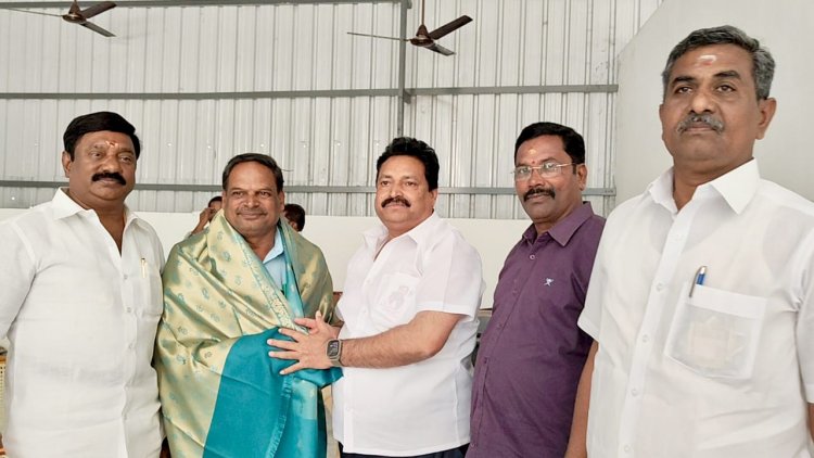 அதிமுக வில் இணைந்த திமுக நகர செயலாளர் நவாப்பை டாக்டர் சந்திரமோகன் பொன்னாடை அணிவித்து பணி சிறக்க வாழ்த்தினார்.!