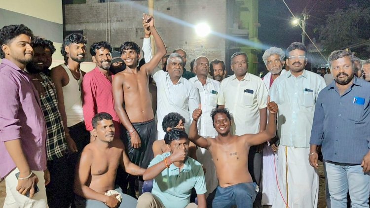 எலத்தகிரி கிராமத்தில் பொங்கல் விழாவினை முன்னிட்டு நடைபெற்ற மாபெரும் வழுக்கு மரம் ஏறும் போட்டி.!