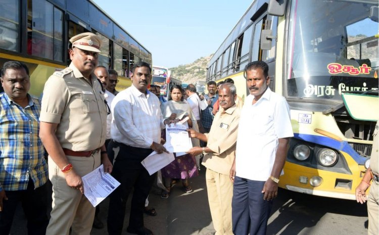 உடன், மாவட்ட காவல் கண்காணிப்பாளர் தங்கதுரை, உதவி ஆணையர் (ஆயம்) பழனி, அரசு போக்குவரத்து கிளை மேலாளர் ராஜேஷ், காவல் ஆய்வாளர் (மது விலக்கு) பிரகாஷ் உள்ளிட்ட பலர் உடனிருந்தனர்.