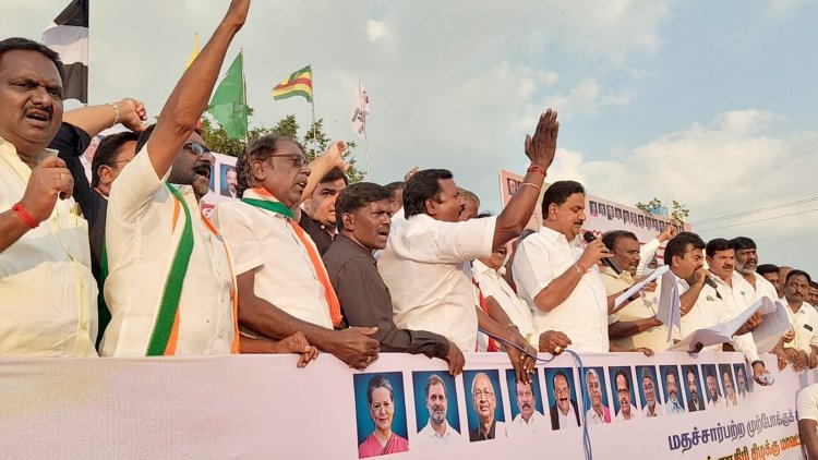 கிருஷ்ணகிரியில் மதச்சார்பற்ற முற்போக்கு கூட்டணி கட்சி சார்பில் நடைப்பெற்ற கண்டன ஆர்ப்பாட்டம்.!