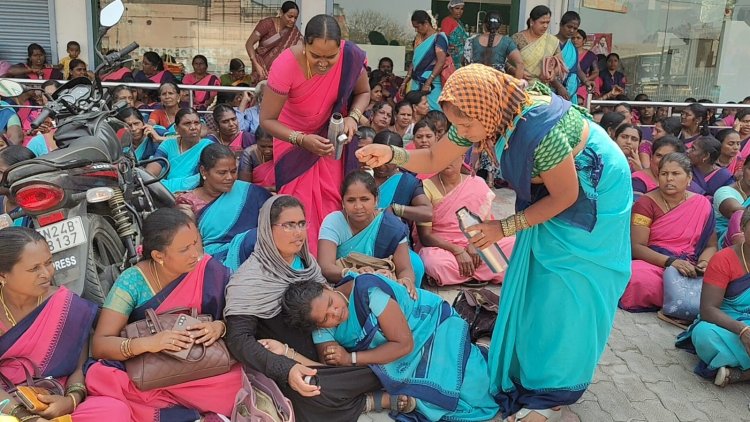 கிருஷ்ணகிரியில் தமிழ் மாநில அங்கன்வாடி ஊழியர் மற்றும் உதவியாளர் சங்கம் சார்பில் தேர்தல் வாக்குறுதியின்படி 313 அமல்படுத்தப்பட வேண்டும் என வலியுறுத்தி சாப்பிடும் தட்டுகள் மூலம் ஓசை எழுப்பி நூதன போராட்டத்தில் ஈடுபட்ட போது அங்கன் வாடி உதவியாளர்கள் இரண்டு பேர் மயங்கி விழுந்தால் பரப்பரப்பு ஏற்பட்டது.