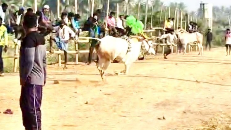 கிருஷ்ணகிரி மாவட்டம், வேப்பனஹள்ளி அருகே உள்ள கங்கோஜிகொத்தூர் கிராமத்தில் பொங்கல் பண்டிகையை முன்னிட்டு மாபெரும் எருது விடும் விழா நடைபெற்றது.