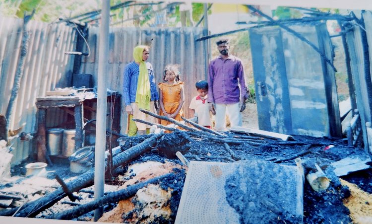 எரிந்து போன விவசாயியின் குடிசை வீடு, இழப்பீடு கேட்டு மாவட்ட ஆட்சியரிடம் மனு கொடுத்த விவசாயிகள். !