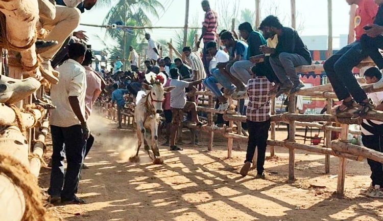 கிருஷ்ணகிரி மாவட்டத்தில் தைத்திருநாள் பொங்கல் பண்டிகை முன்னிட்டு பல்வேறு கிராமங்களில் தமிழர்களின் வீர விளையாட்டான எருது விடும் விழா நடத்தப்பட்டு வருகிறது. அந்த வகையில் கிருஷ்ணகிரி அருகே உள்ள தானம்பட்டி கிராமத்தில் மாபெரும் எருது விழா கிராம மக்கள் சார்பில் நடைபெற்றது.