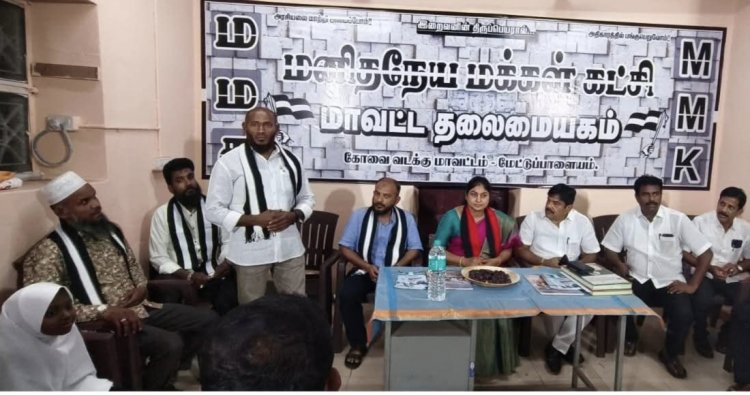 மேட்டுப்பாளையம் சட்டமன்றத் தொகுதி வேட்பாளர் SMT கவிதா கல்யாண சுந்தரம் கோவை வடக்கு மனிதநேய மக்கள் கட்சி மாவட்ட தலைமை அலுவலகத்திற்கு வருகை