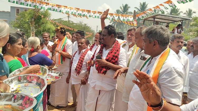 காங்கிரஸ் வேட்பாளருக்கு கிராம மக்கள் பட்டாசு வெடித்தும் ஆரத்தி எடுத்து சிறப்பான வரவேற்பு கொடுத்தனர்.!