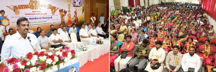 கிருஷ்ணகிரி மாவட்டம், ஓசூர் அதியமான் பொறியியல் கல்லூரி வளாகத்தில், பள்ளிக்கல்வித் துறை சார்பாக, அரசு மற்றும் அரசு உதவிபெறும் பள்ளி மாணவ, மாணவியர்களுக்கான மாநில அளவிலான கலைத் திருவிழாவினை மாவட்ட ஆட்சித்தலைவர் ச.தினேஷ் குமார் இ.ஆ.ப., குத்து விளக்கு ஏற்றி துவக்கி வைத்து உரையாற்றினார்.